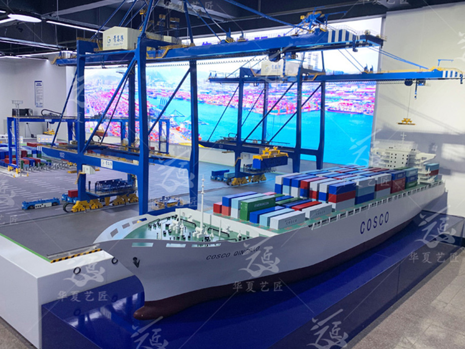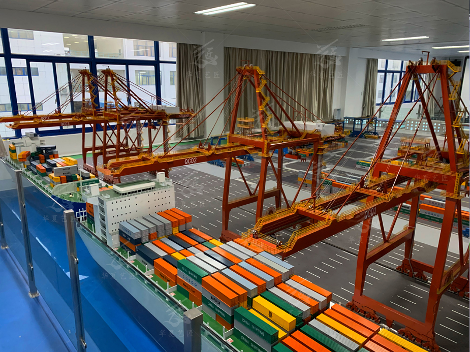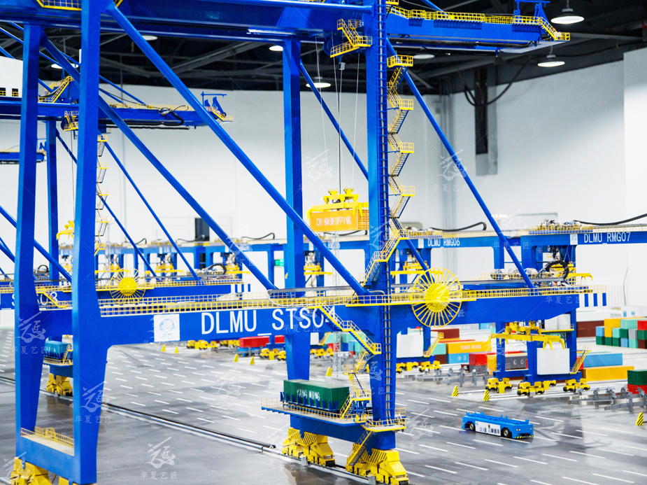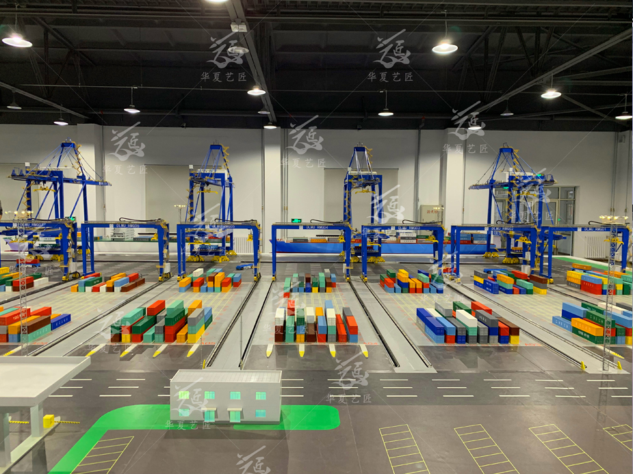 大連海事大學(xué)智慧港口物流實(shí)訓(xùn)平臺(tái)模型比例:1-30模型尺寸:長12米x寬11x高3.3米底座高0.6米、岸橋高2.75米。岸橋4個(gè)、場橋9個(gè)、火車場站.軌道吊2個(gè),貨車一列、集卡車一輛。