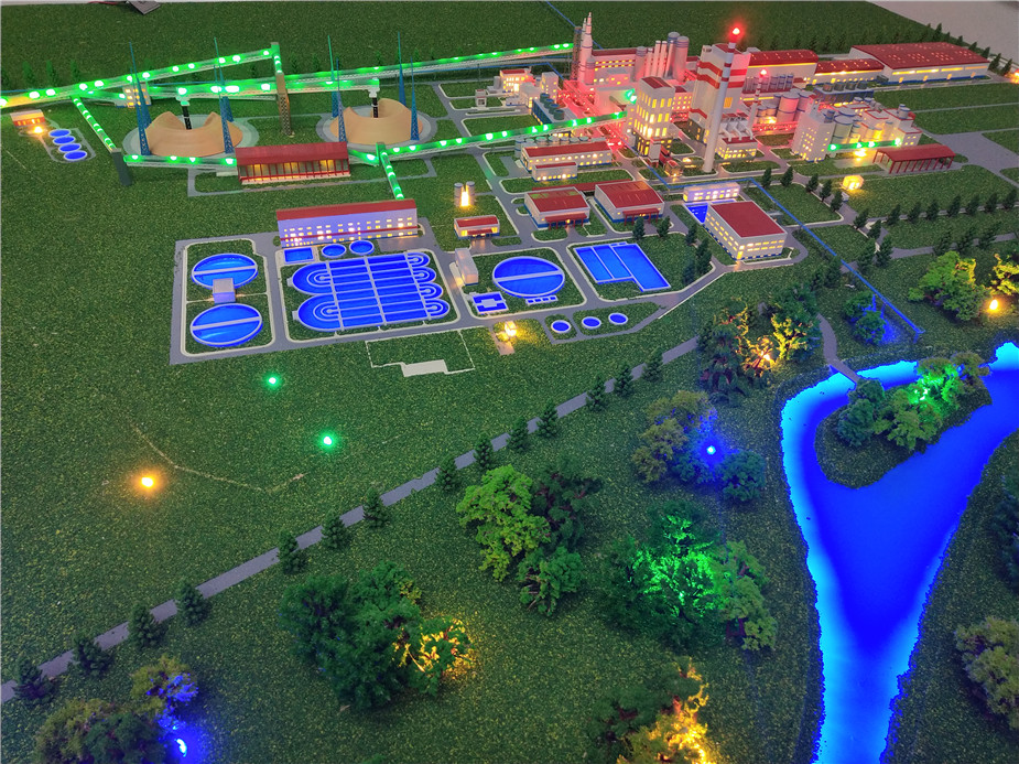 造紙廠污水處理流程沙盤制作。從原材料到工廠整體生產(chǎn)流程表現(xiàn)。污水通過處理后...
