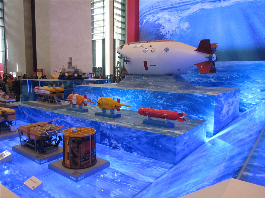 1月14日,觀眾在“偉大的變革——慶祝改革開放40周年大型展覽”上參觀深海探測裝...