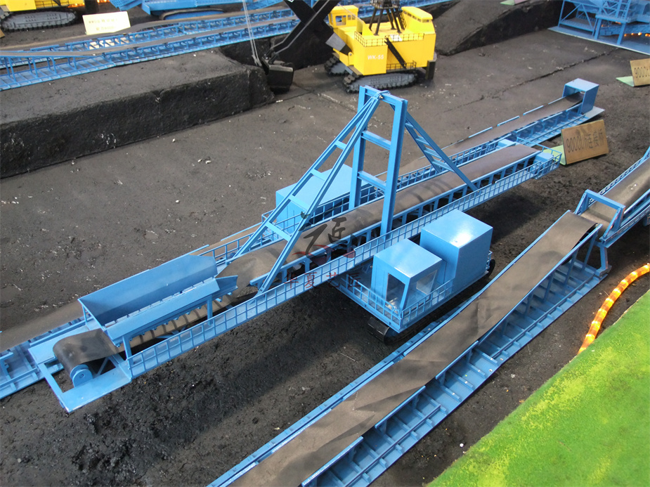 原煤進入原煤準備車間后,首先經(jīng)過兩道除鐵器,去除煤油中鐵器雜物,然后進入原煤分級篩進行篩分,200毫米以上的矸石直接排進大矸溜槽送入干式帶式輸送機,運至矸石倉。200-50毫米篩上物通過首選皮帶去除煤中雜物,進入動篩跳汰機進行預先矸石分選,動篩跳汰機通過動篩運動使物料在水介質(zhì)中作干涉沉降,實現(xiàn)分選。輕產(chǎn)物和重產(chǎn)物分別落入提升輪的后段和前段排出,透篩物經(jīng)椎體底部排出,經(jīng)過斗提機脫水。選煤廠洗煤廠生產(chǎn)線三維動畫,煤礦鐵礦礦山開采機械設(shè)備三維演示動畫與動態(tài)模型制作。