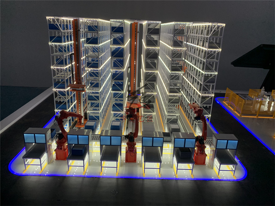 5.立體倉(cāng)儲(chǔ)中心,動(dòng)態(tài)表現(xiàn),碼垛機(jī)三個(gè),設(shè)備一上下前后動(dòng)實(shí)現(xiàn)自動(dòng)碼垛功能,設(shè)備二就實(shí)現(xiàn)前后來(lái)回走動(dòng),設(shè)備三靜態(tài)的。三個(gè)機(jī)械臂左右來(lái)回轉(zhuǎn)動(dòng)貨車。貨架有貨物顯示紅燈沒(méi)有貨物顯示綠燈。同時(shí)微型顯示器顯示倉(cāng)儲(chǔ)空位和已經(jīng)儲(chǔ)存的貨物數(shù)量進(jìn)行識(shí)別。