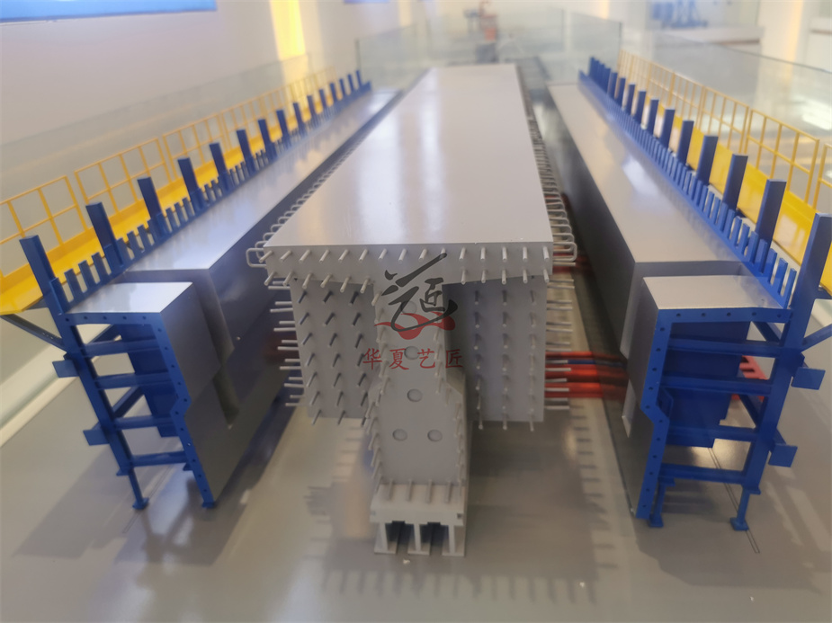 梁場公路設備模型、蒸養(yǎng)箱模型、魚雷罐模型、布料機模型、液壓模板模型、擺渡車模型、自行式臺車模型、